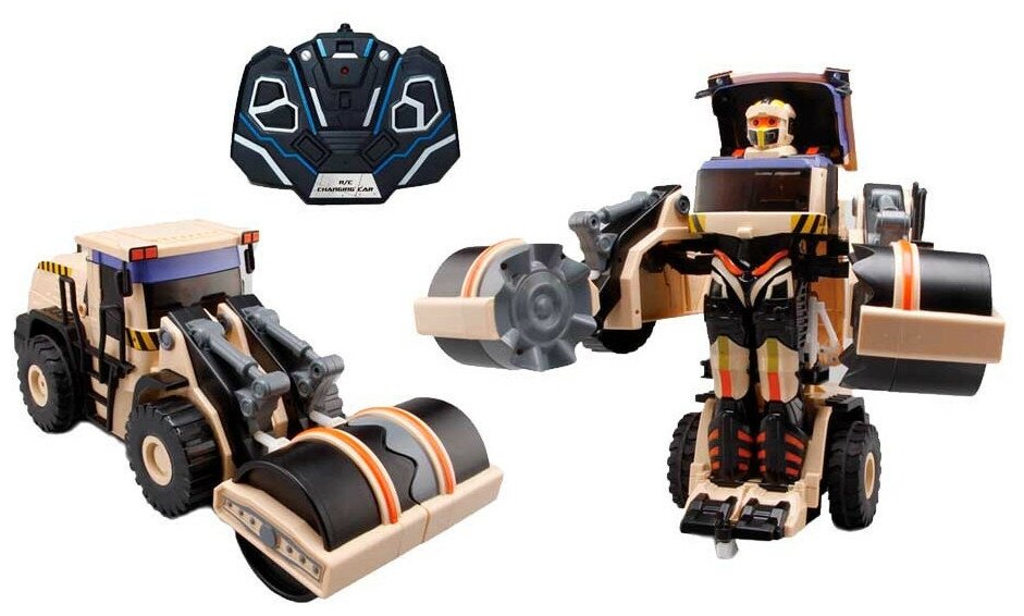 1toy робот на р/у, трансформируется в строительный каток, со светом и звуком, 38см, коробка