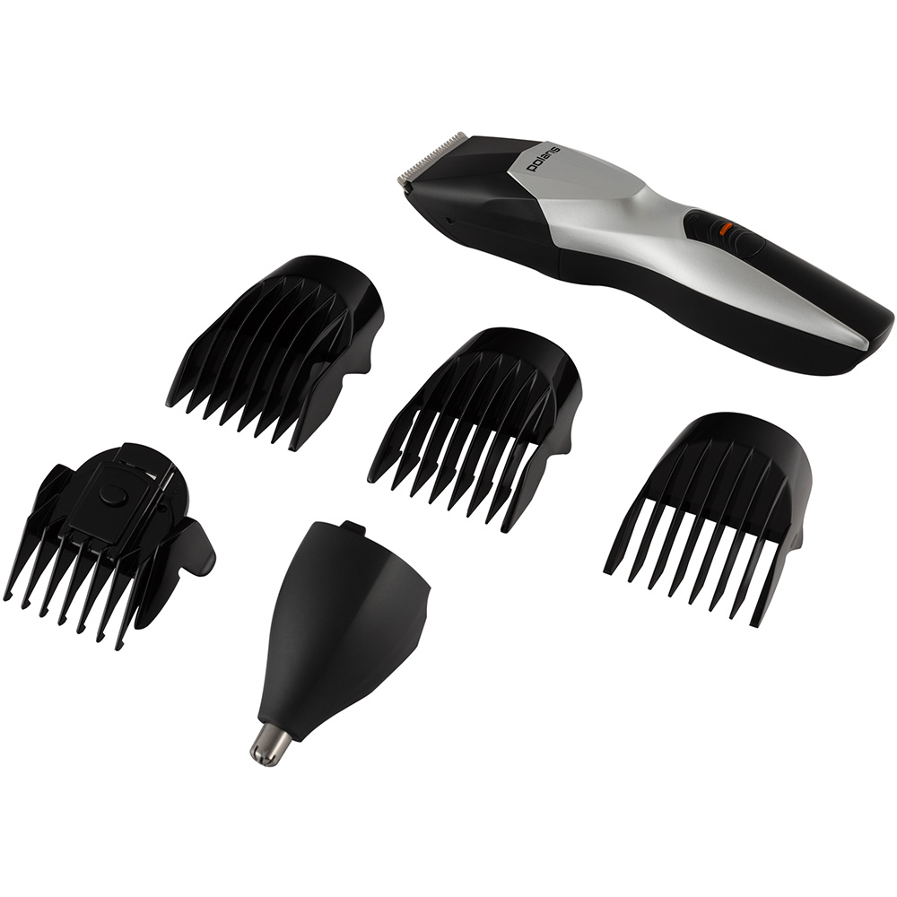 Машинка для стрижки Polaris PHC 1201R черный/серебристый (насадок в компл:5шт) .