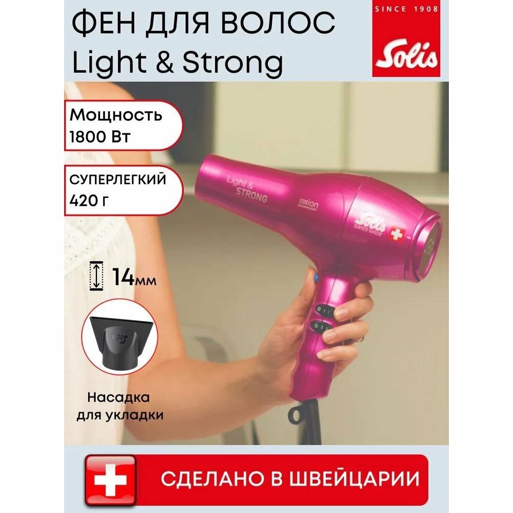 Купить Фен Solis 969.42/969.45 Light & Strong, pink