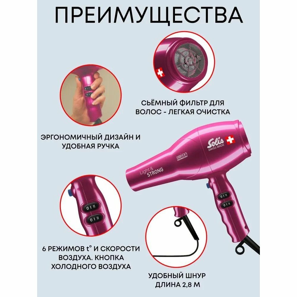 СохранитьФен Solis 969.42/969.45 Light & Strong, pink интересное: