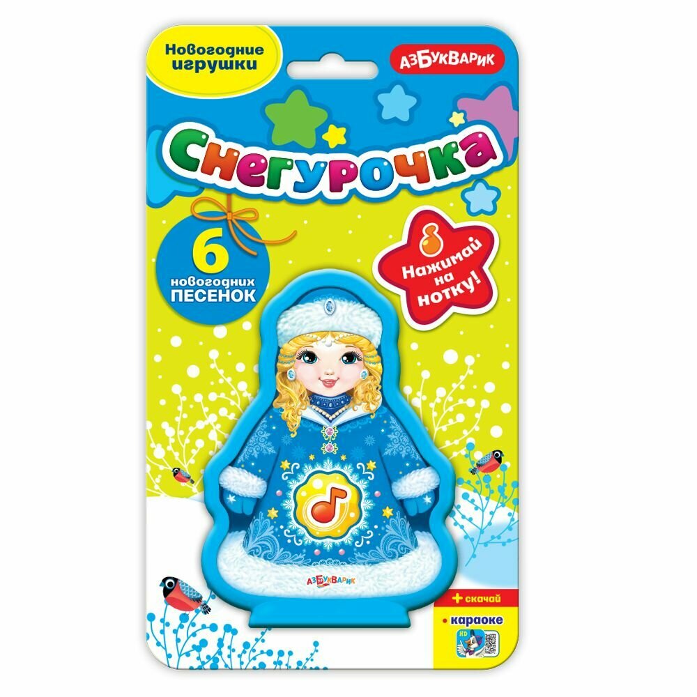 Музыкальная игрушка Азбукварик "Снегурочка", 6 новогодних песенок, кнопка