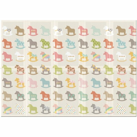 Складной игровой детский коврик Parklon Portable "Деревянные лошадки" безворсовый, развивающий для ползания малышей, 140x200