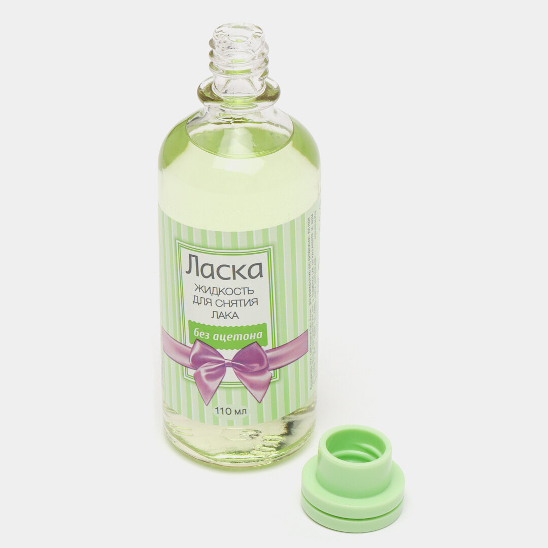 Жидкость для снятия лака Ласка Без ацетона, 110 мл, стеклянный флакон