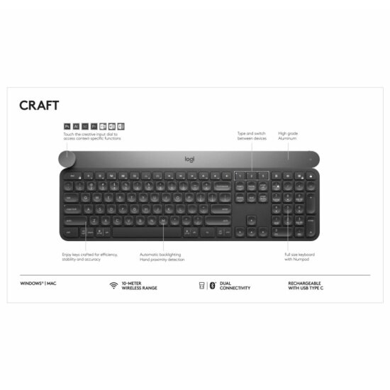 Клавиатура Logitech Craft (Английская раскладка, цвет черно-серый)
