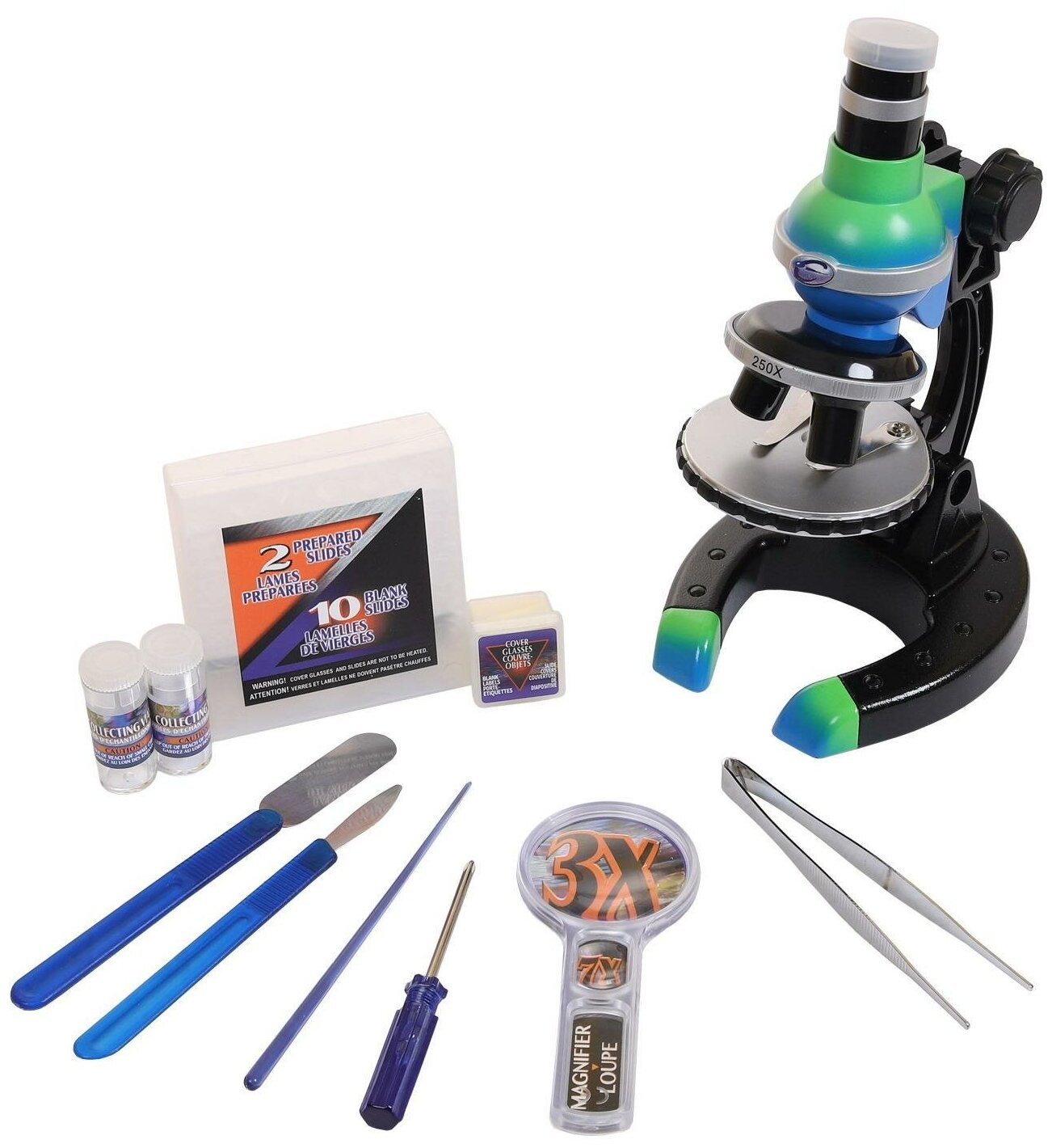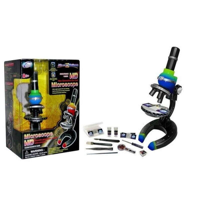 Микроскоп нового поколения, увеличение 250х500х1000, цвет сине-зеленый, в наборе 59 предметов