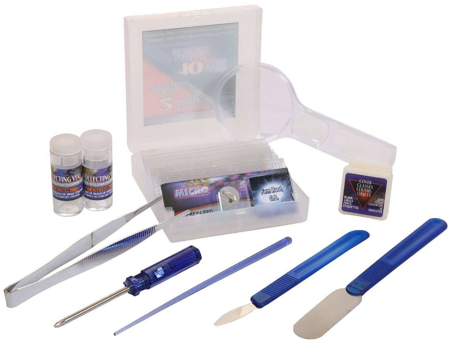 | Минусы: | В характеристиках обтекаемо написано "59 предметов", что можно понять, как 59 готовых препаратов. В действительности готовых препарата только 2. Ребёнок 8 лет (рекомендованный возраст) точно не сможет самостоятельно подготовить препарат. На 1000-кратном объективе много "шума", т.е. видишь какие-то пятна, пыль, одинаковые при любой высоте объектива, это значит, что они не на предметном стекле, а в самой системе (протирание объектива фланелью не помогает). Предметные стекла царапаются от однократного прижатия клипсами. В "59 предметов" входят какие-то многочисленные (пустые) плёнки, наклейки, предназначение которых в инструкции не описано, видимо они нужны для фиксации неплоских образцов, которые не зажмешь между стёклами. В инструкции описано окрашивание образцов, логично было бы ожидать, что в комплекте есть краситель и пипетка, но их нет. Зато есть стеклянная палочка и 2 пустых пузырька видимо для сбора образцов. |