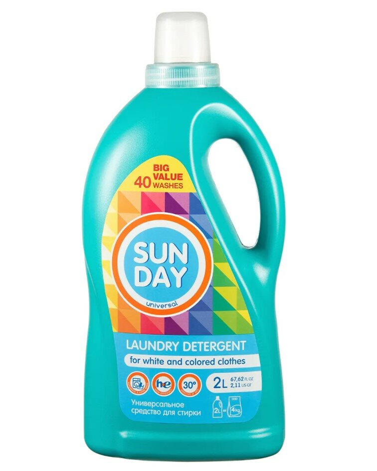 Купить Sunday Жидкое средство для стирки Sunday для цветного и белого, универсальный 2 л