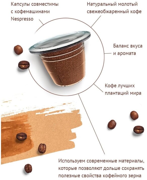 +недорогой (где-то 150 рублей 10 капсул) + насыщенный вкус, приятный +без химических добавок (наверное, но в составе только натуральный кофе) |