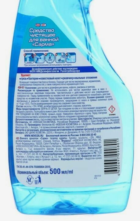 Невская косметика Средство Сарма для чистки поверхностей ванной комнаты 500 мл