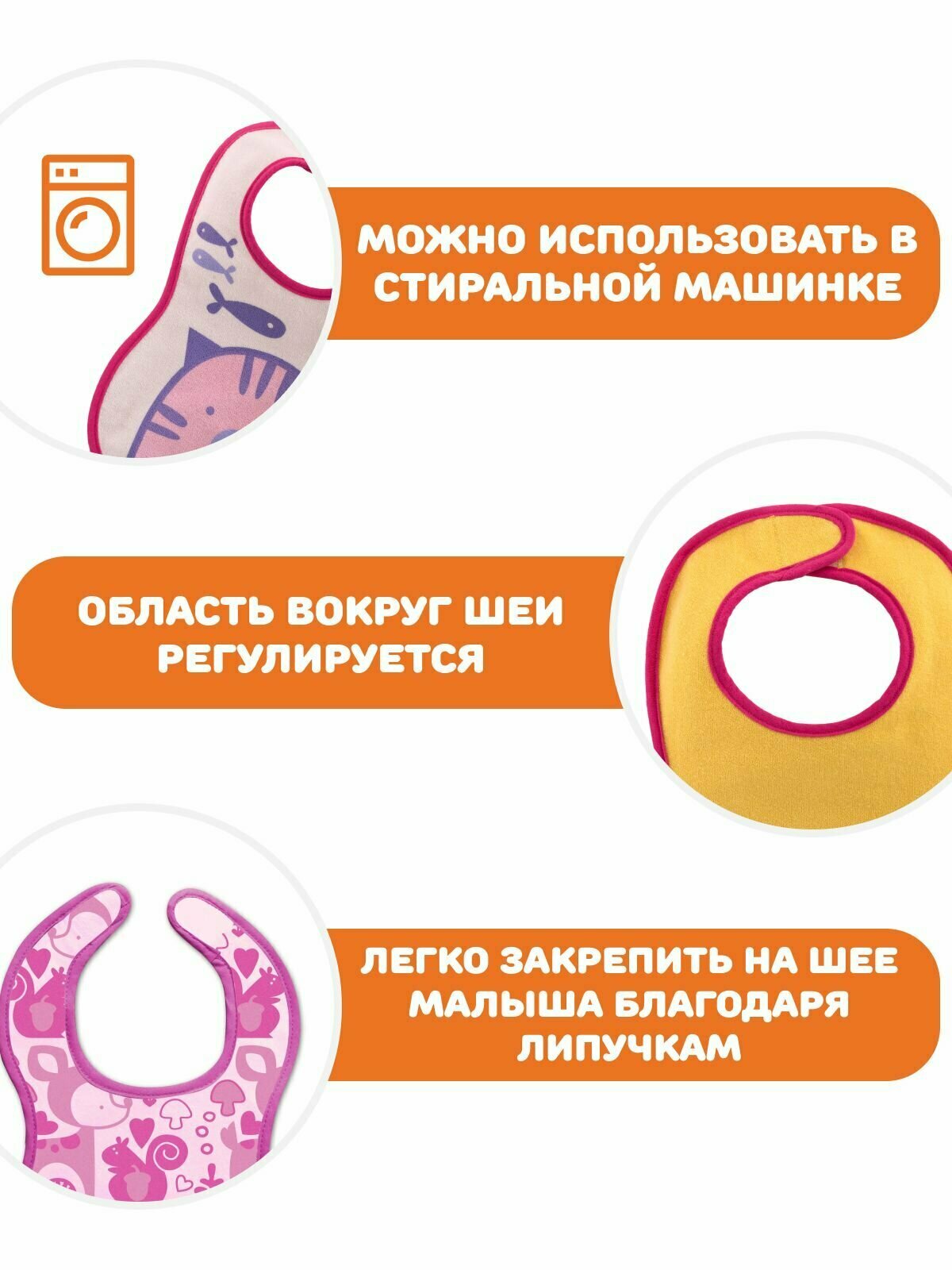 Нагрудник Chicco Easy Meal не пропускает влагу, 6мес.+, 3 шт., розовый/нагрудник для кормления/слюнявчик детские /детский нагрудник/нагрудник непромокаемый/фартук для кормления детей/набор для кормления детский