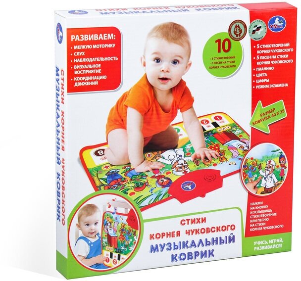 Коврик музыкальный стихи К.И.чуковского 40 см х 25 см умка HX05013-A-R4