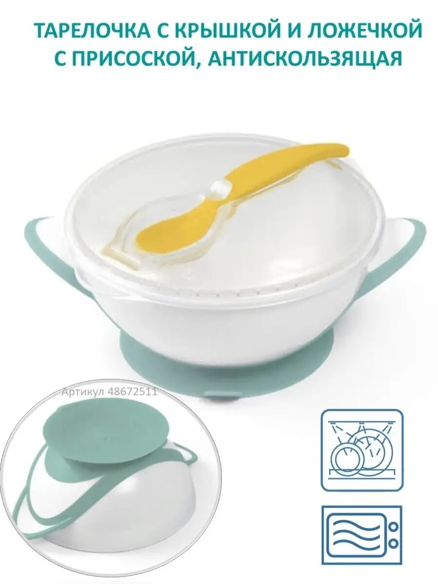 Тарелочка с присоской, крышкой и ложечкой для малыша / тарелка детская.