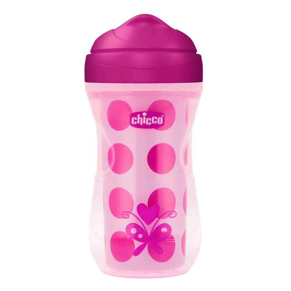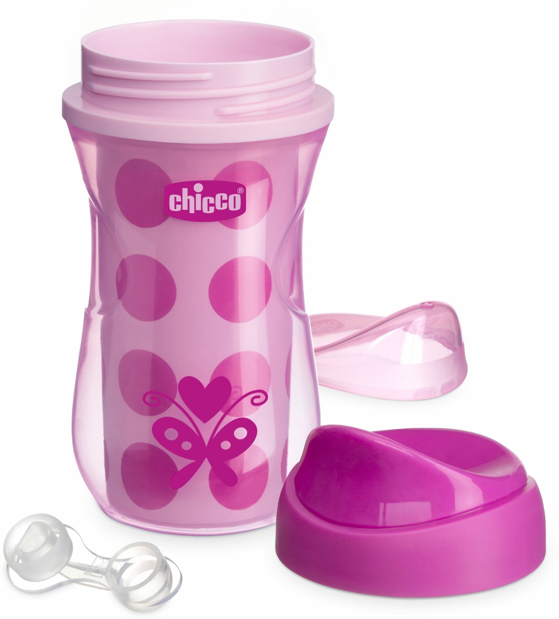 Поильник-непроливайка Chicco Active Cup, 266 мл розовый/рисунок бабочки веточки