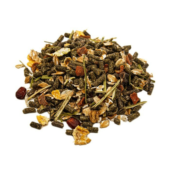 | Отзыв: | Хороший состав. Состоит не только из травяных гранул, но и из злаков, зёрен, овощей, фруктов. |