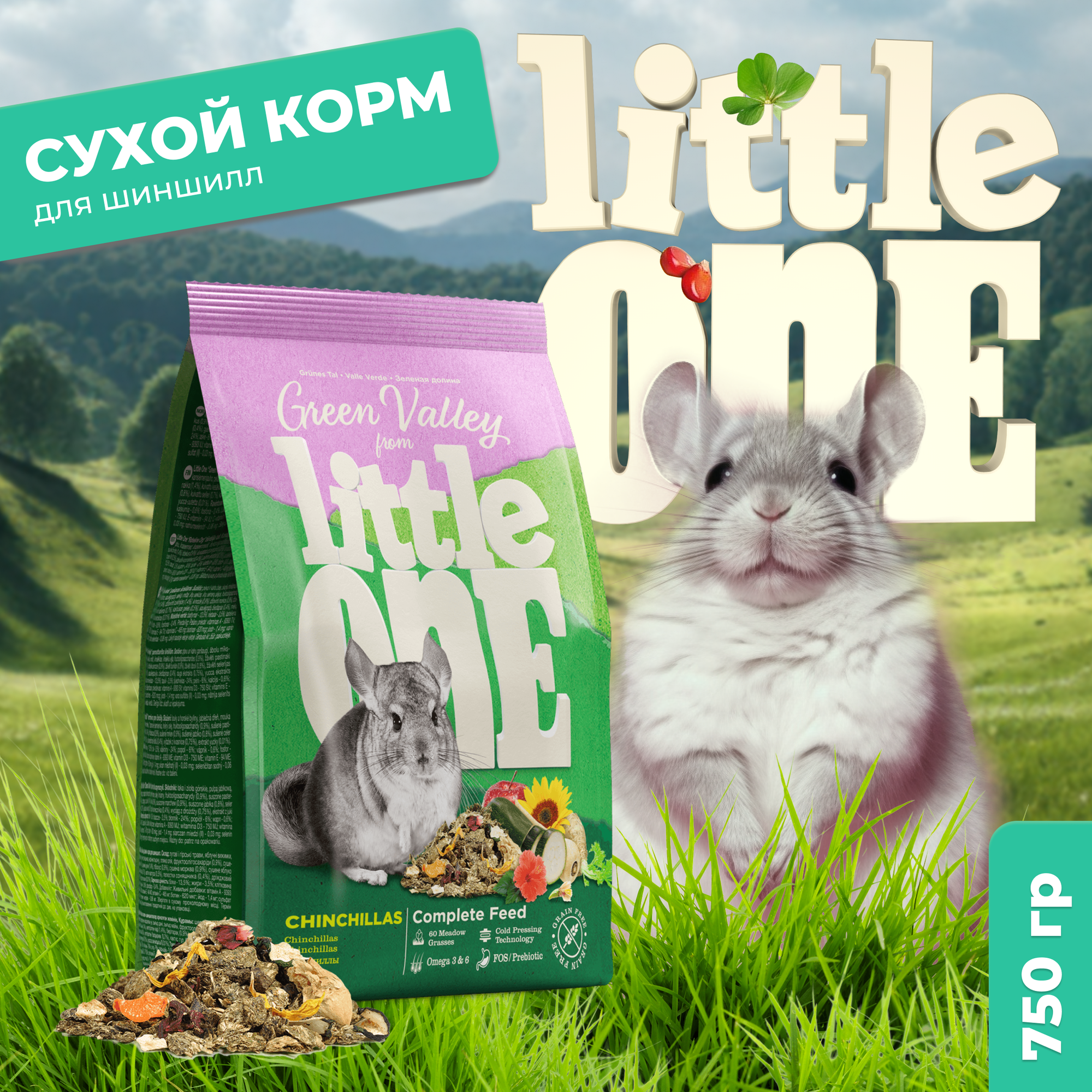 Little One Корм из разнотравья "Зеленая долина"для шиншилл 750 г, пакет