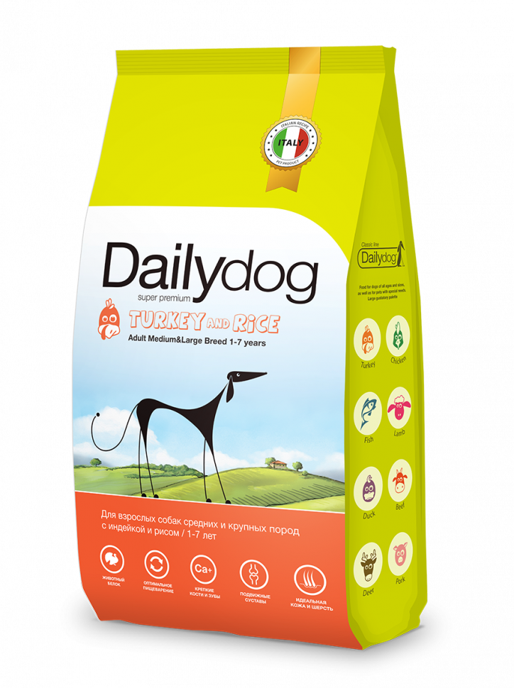 Дэйлидог для собак средних и крупных пород, с индейкой и рисом / Dailydog Classic Line, 20 кг