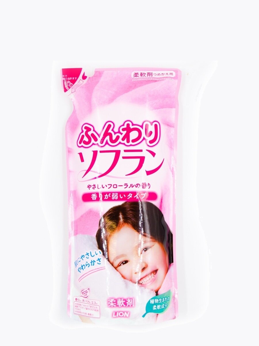 LION Кондиционер для белья Soflan Funwari Нежность пуха для деликатных и шерстяных тканей цветочный аромат, сменная упаковка 500 мл.