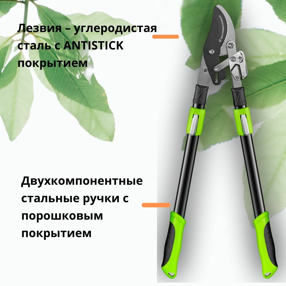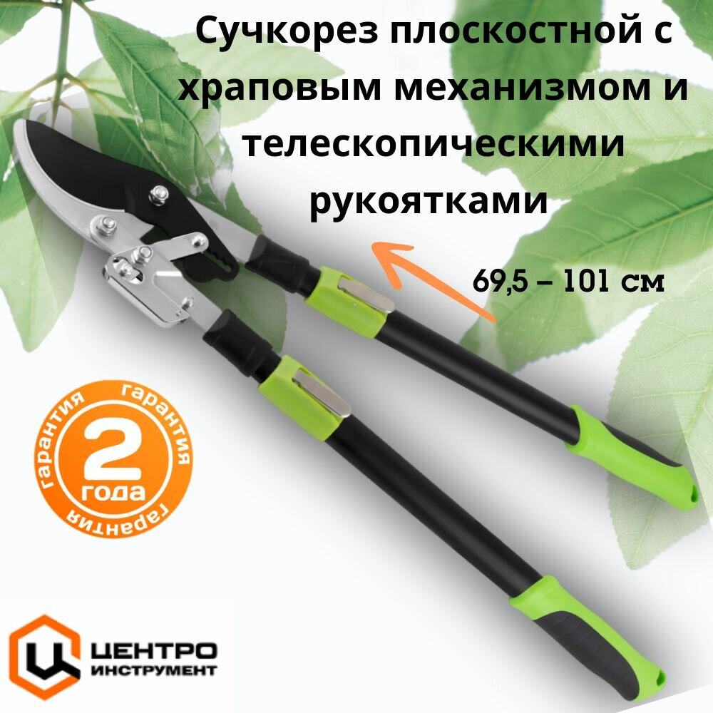 Сучкорез плоскостной с храповым механизмом и телескопическими рукоятками центроинструмент 0207