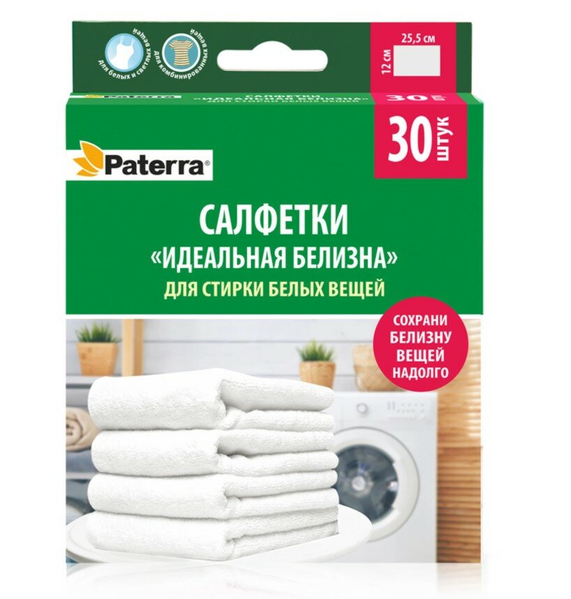 Салфетки Идеальная белизна для стирки белого белья 30шт 12*25,5см, PATERRA