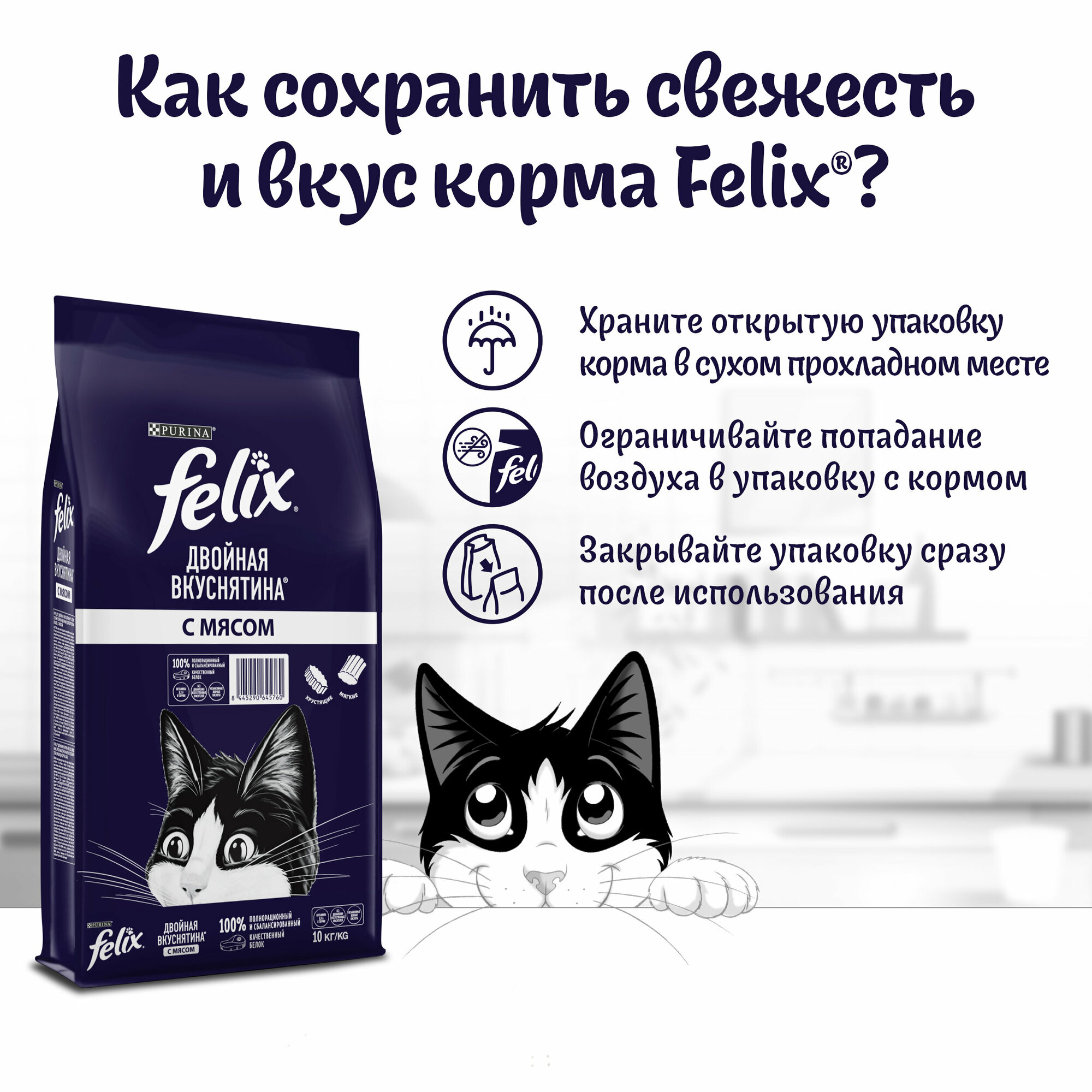 Сухой корм для кошек Felix Двойная Вкуснятина, мясо, 10кг