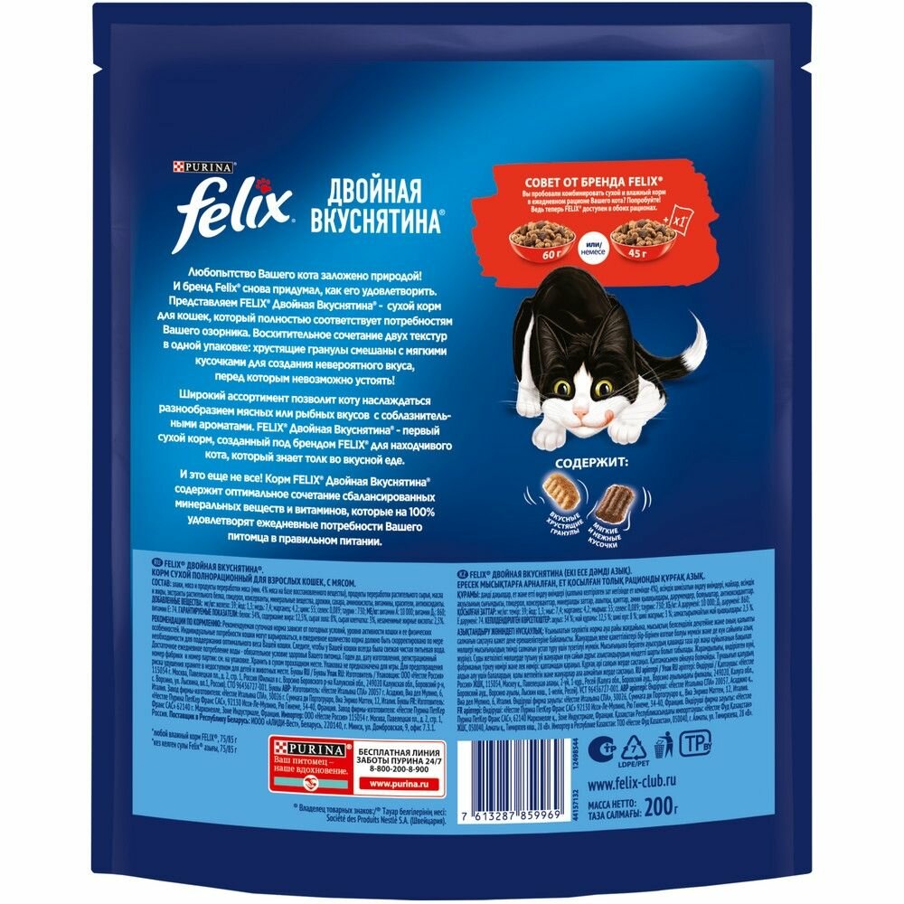 Felix Сухой корм для взрослых кошек Двойная вкуснятина, с мясом, 200 г, 6 уп