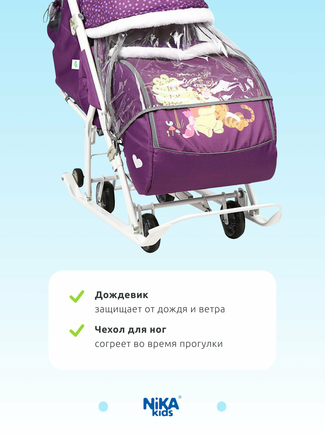 Санки-коляска NIKA Disney Baby 2 (с Винни Пухом баклажановый)