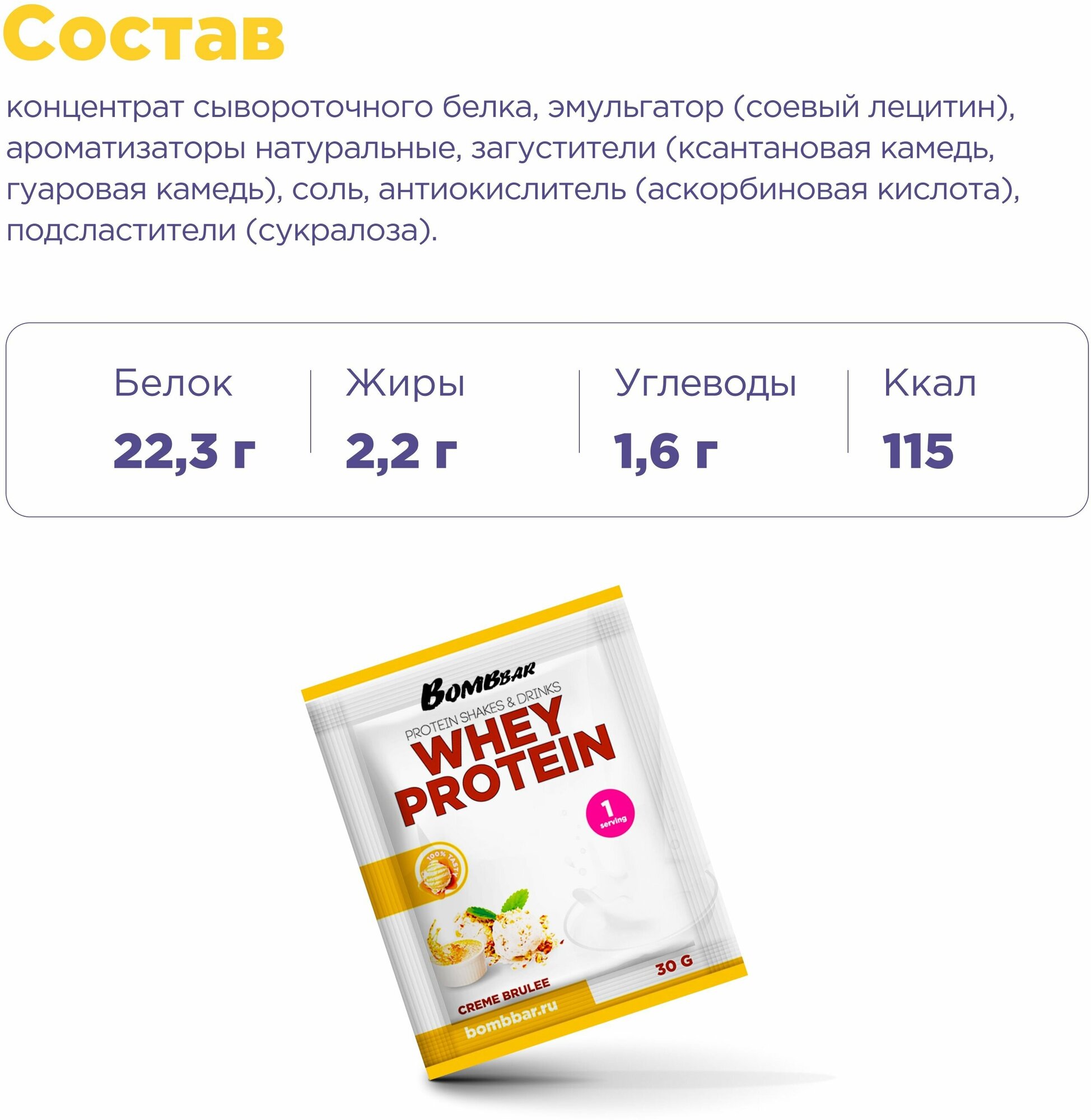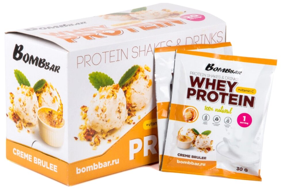 Купить BombBar Whey Protein 30 г (упаковка 20 шт) Крем-брюле 30 г
