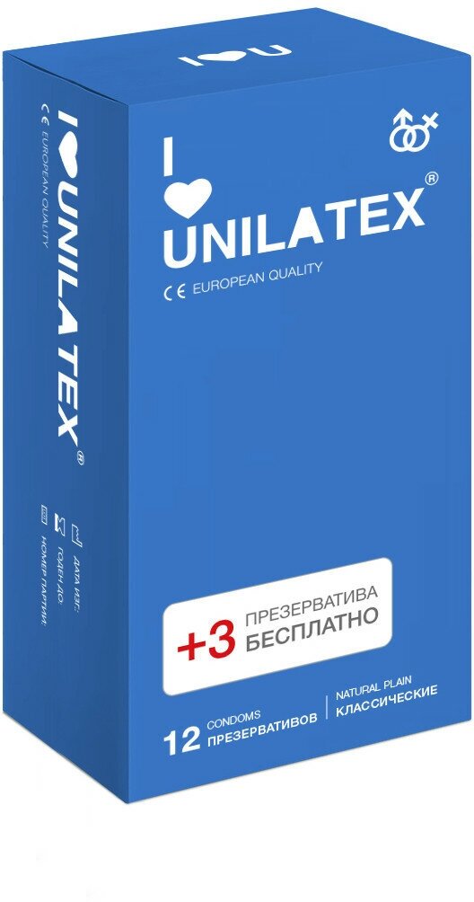 Классические презервативы Unilatex Natural Plain - 12 шт. + 3 шт. в подарок (Цвет: не задано)