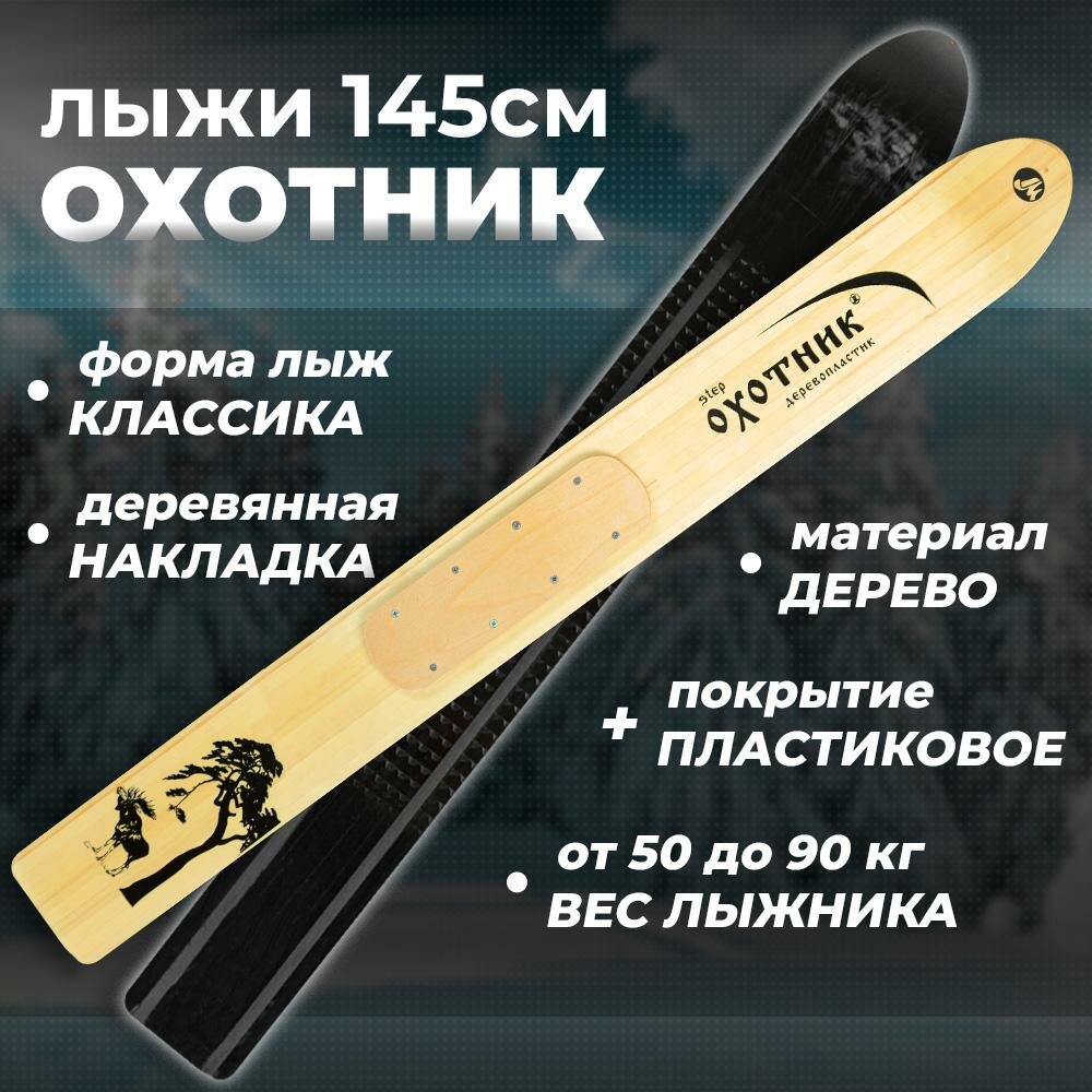Лыжи охотничьи пластиковые Маяк охотник 145 х 15 см с деревянными накладками (дерево-пластик)