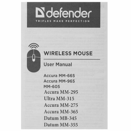 Defender Accura Wireless Optical Mouse (mm-365) (rtl) USB 6btn+Roll (52367) .
