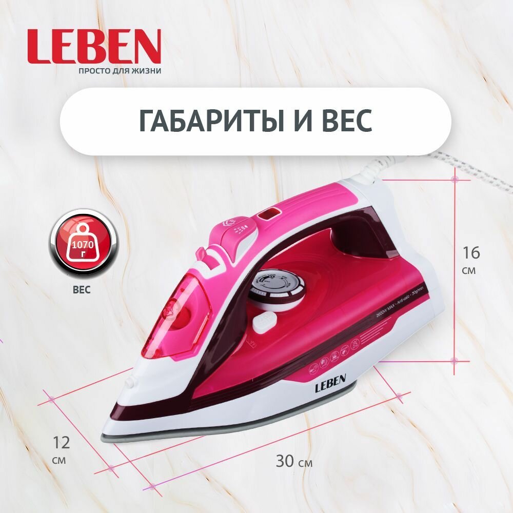 Утюг LEBEN 2600 Вт, подошва керамика, вертикальное отпаривание, самоочистка, розовый 249-014