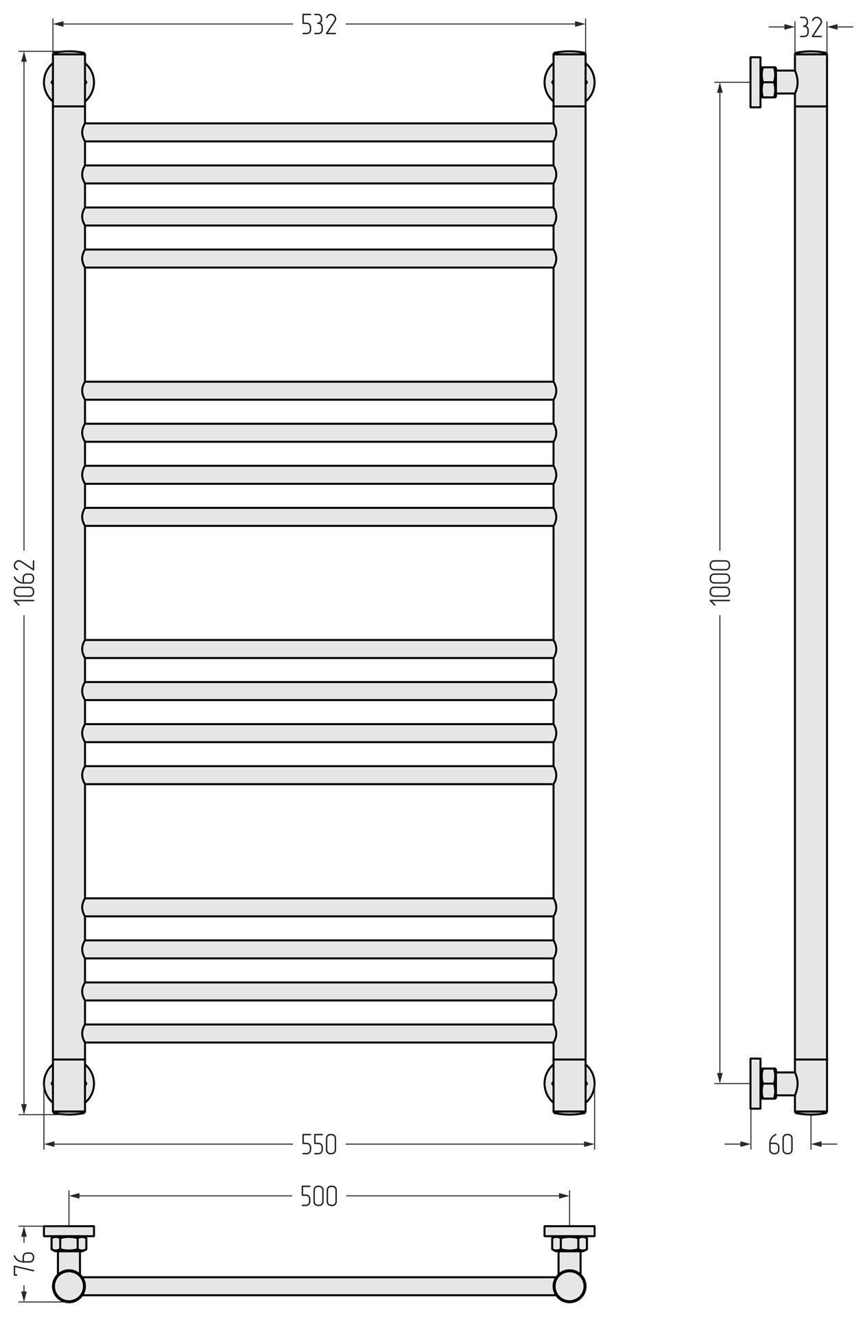 Полотенцесушитель водяной Сунержа Богема+ прямая 1000х500 Без покрытия 00-0220-1050