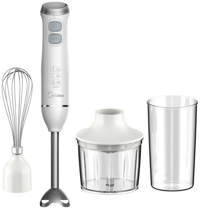 Блендер погружной Midea MC-BL301, чаша измельчителя, венчик, стакан, max 1200 Вт, белый