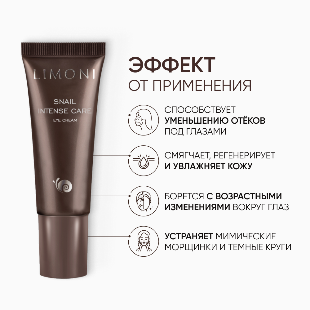 LIMONI Крем для век Snail Intense Care Eye Cream интенсивный с экстрактом секреции улитки, 25 мл