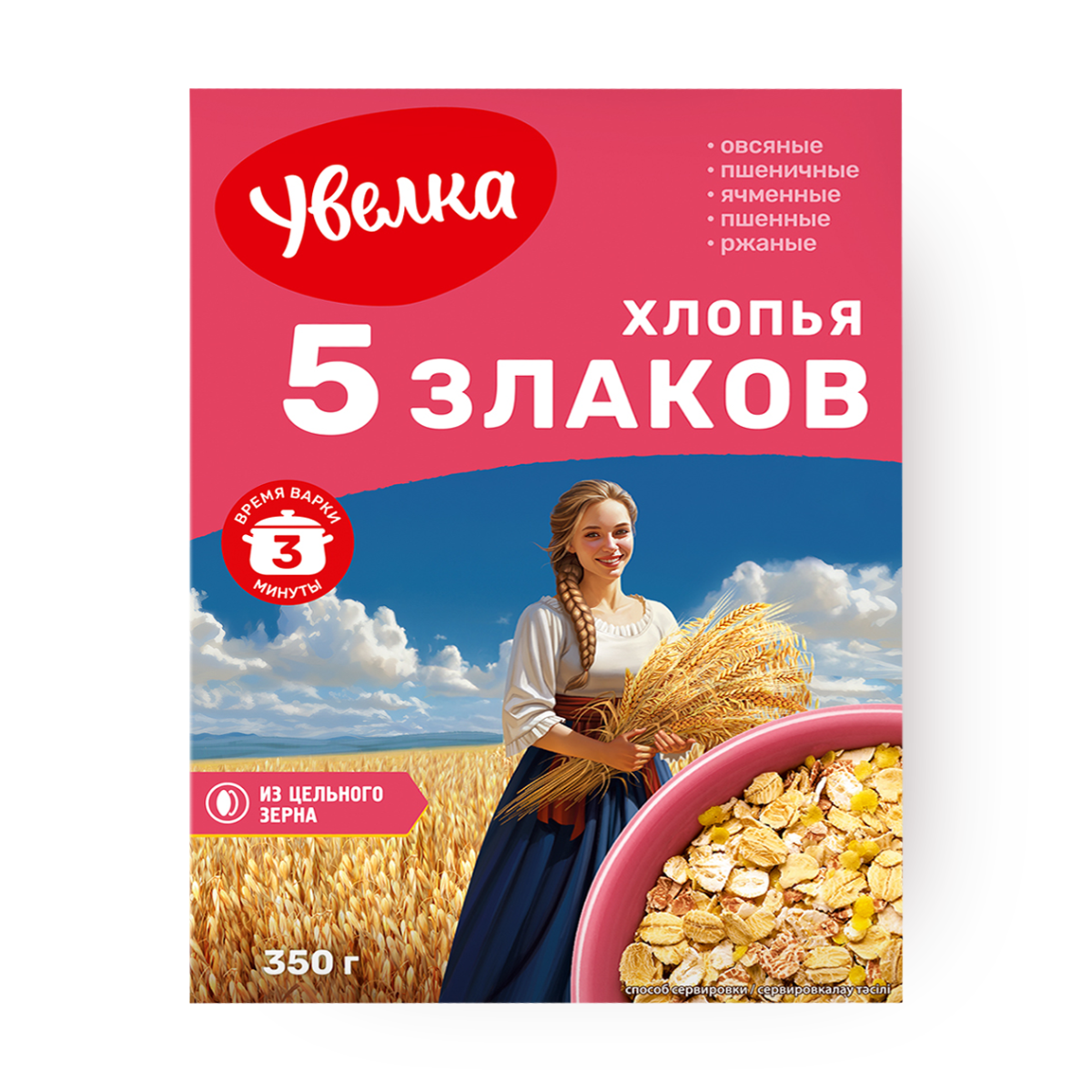 Хлопья 5 злаков Увелка тонкие, 350 г интересное: