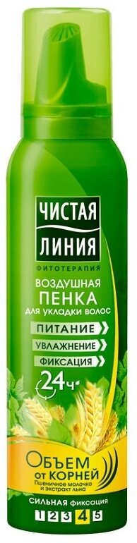 Чистая Линия - Пенка для укладки волос Фитотерапия Объем от корней пшеница сильная фиксация 150 мл