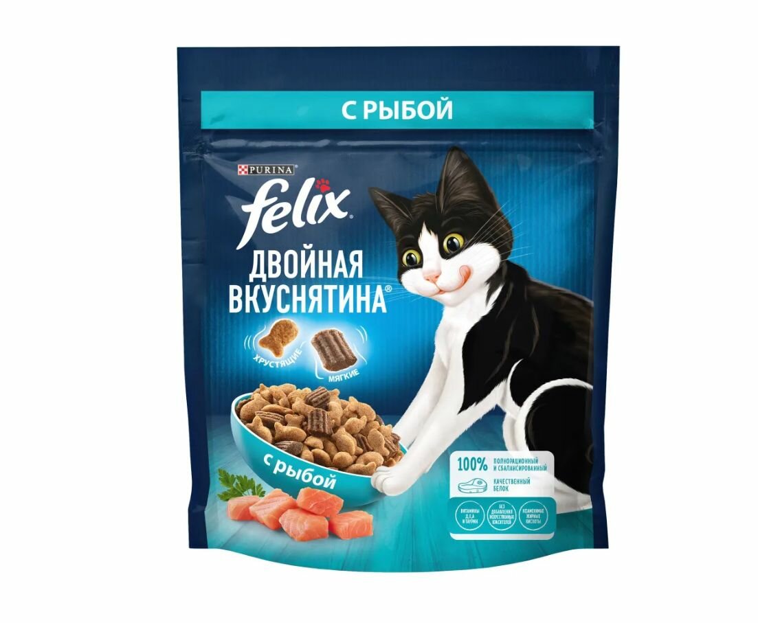 Купить Felix Сухой корм для кошек Двойная вкуснятина с рыбой 12498545 0,2 кг 59840 (1 шт)