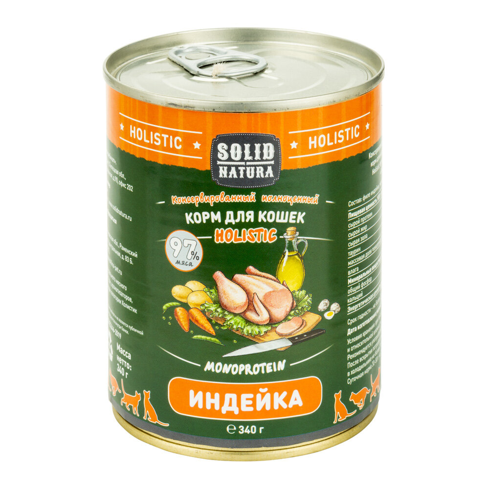 Solid Natura Holistic Индейка влажный корм для кошек жестяная банка 0,34 кг, шт