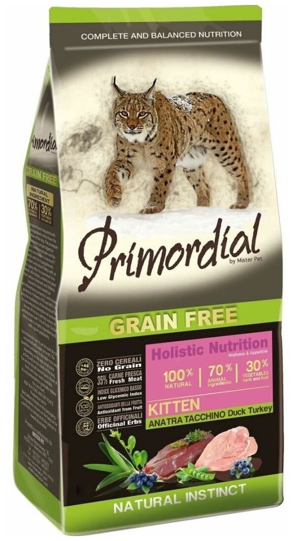 Сухой корм для котят Primordial беззерновой, с уткой, с индейкой 2 кг
