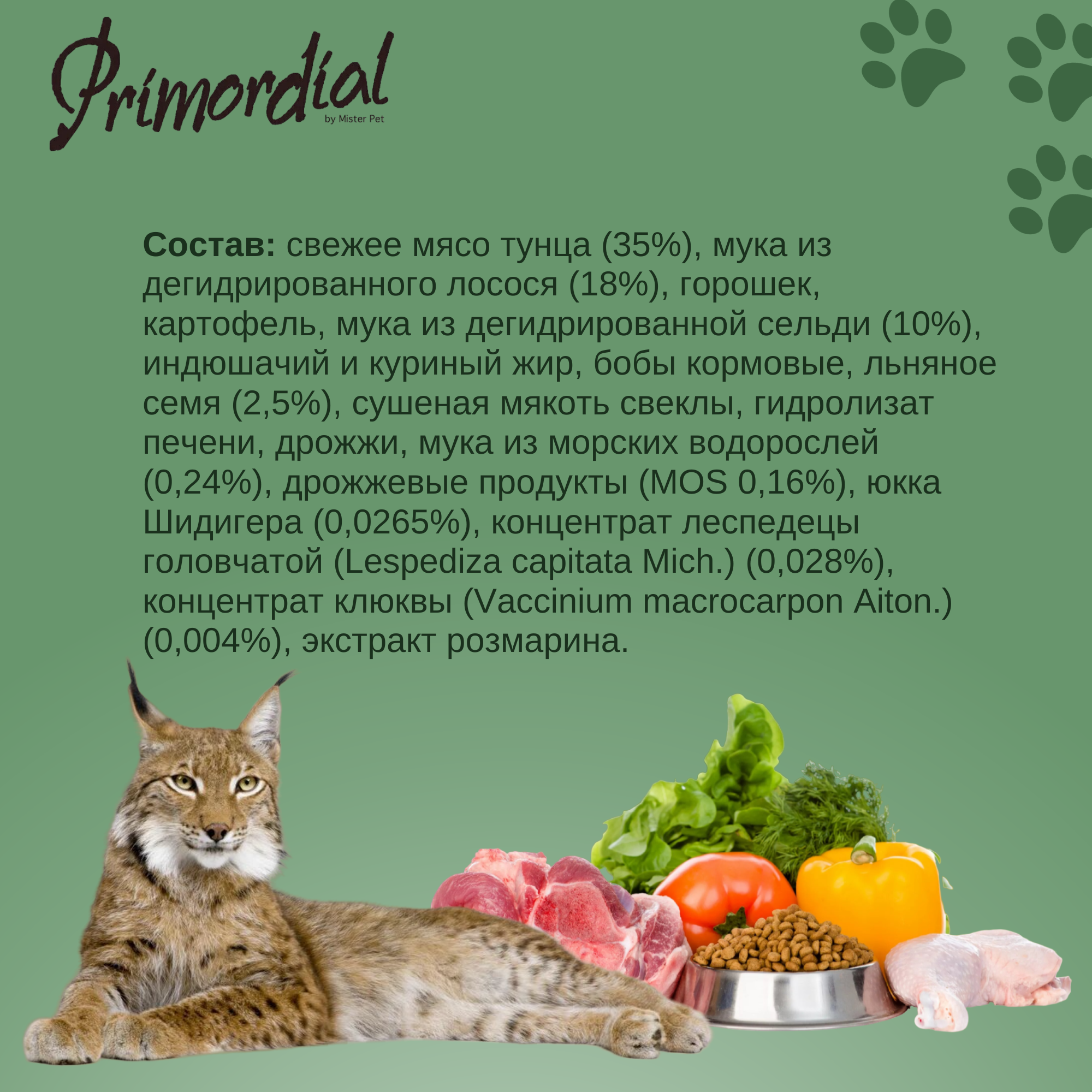 PRIMORDIAL сухой корм для кошек беззерновой (лосось,тунец) 400 г