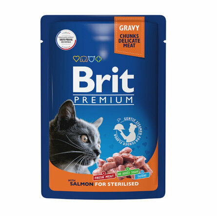 Корм Brit Premium Sterilised Salmon (в соусе) для стерилизованных кошек, лосось, 85 г x 14 шт