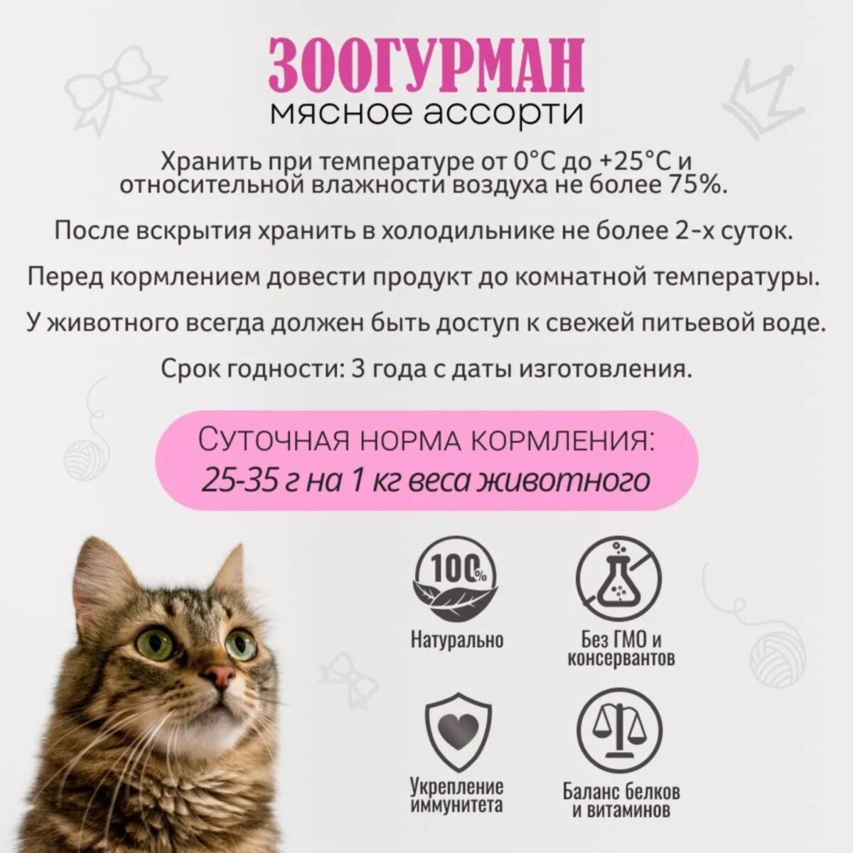 СохранитьКорм для кошек влажный Зоогурман Мясное ассорти для взрослых животных, кусочки телятины с языком в желе 250г / консервы интересное: