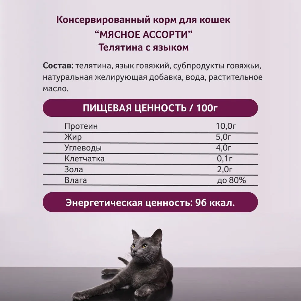 Консервы для кошек Мясное Ассорти Телятина с языком, 250 гр