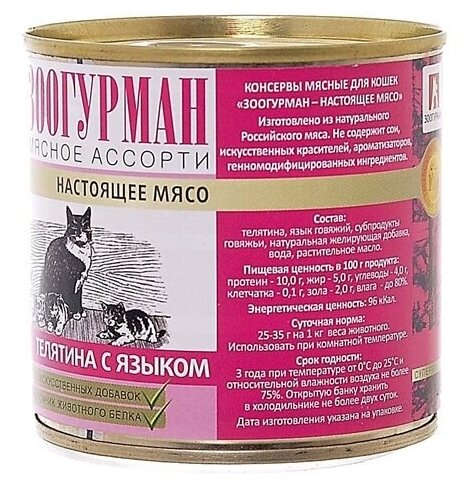 Корм для кошек Зоогурман (0.25 кг) 1 шт. Мясное ассорти для кошек Телятина с языком
