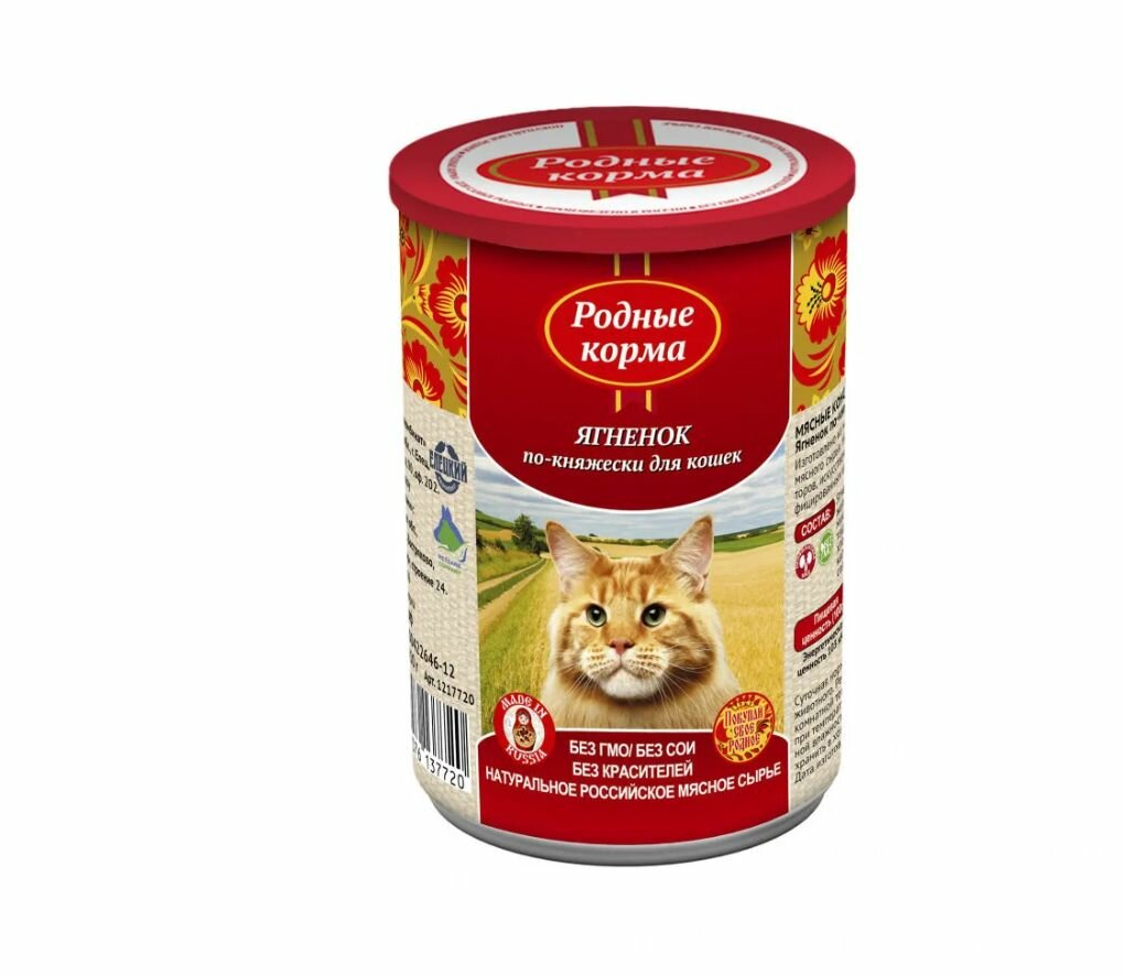 Родные корма Консервы для кошек ягненок по-княжески 64559 0,41 кг 34200 (26 шт)