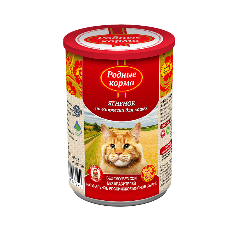 Родные корма Консервы для кошек ягненок по-княжески 64559 0,41 кг 34200 (26 шт)