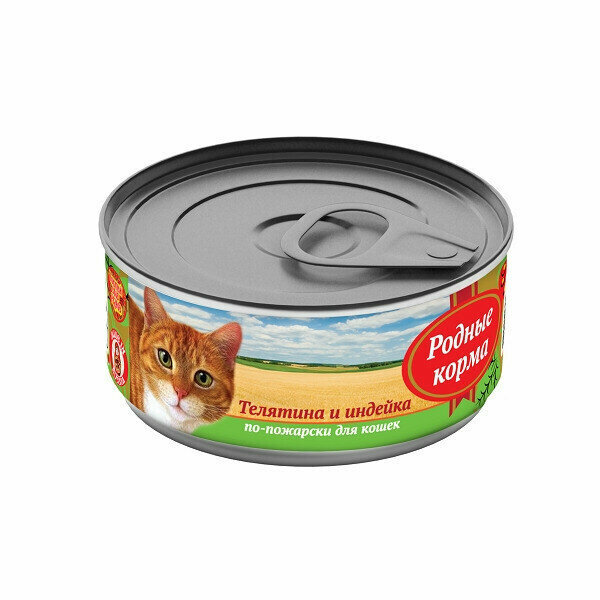 Родные корма Консервы для кошек телятина и индейка по-пожарски 64557, 0,41 кг, 34199 (26 шт)