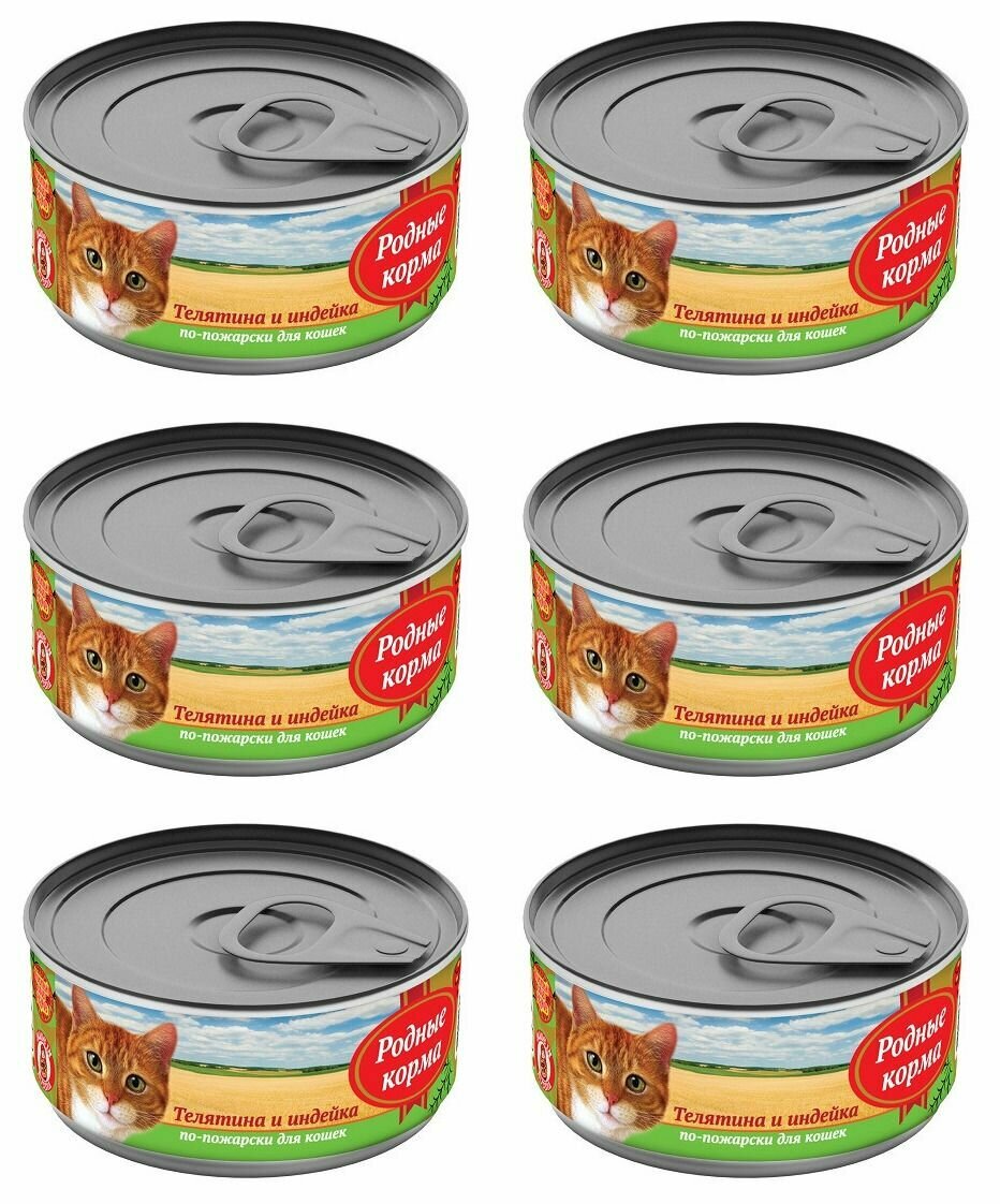 Купить Родные Корма Консервы для кошек Телятина и индейка по-пожарски, 100 г, 6 шт