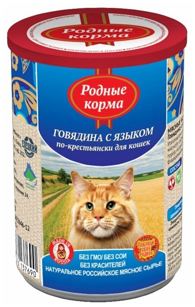 Родные корма Консервы для кошек говядина с языком по-крестьянски 64556, 0,410 кг