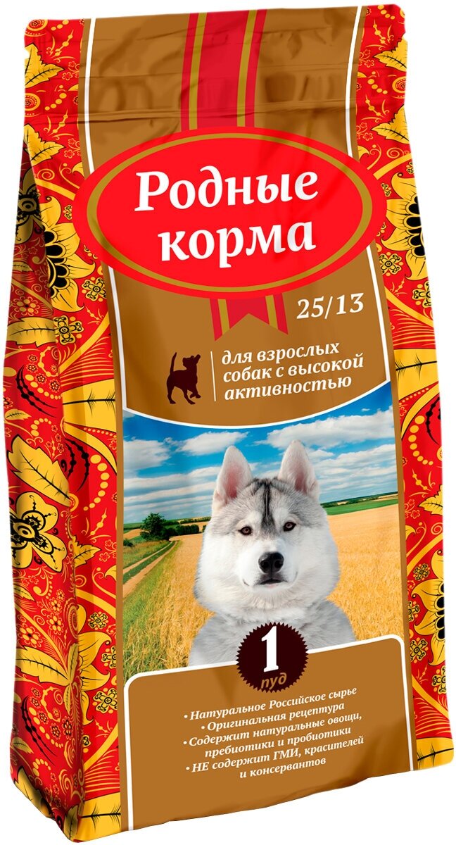 Родные корма 25/13 1 пуд 16,38 кг сухой корм для взрослых собак с высокой активностью